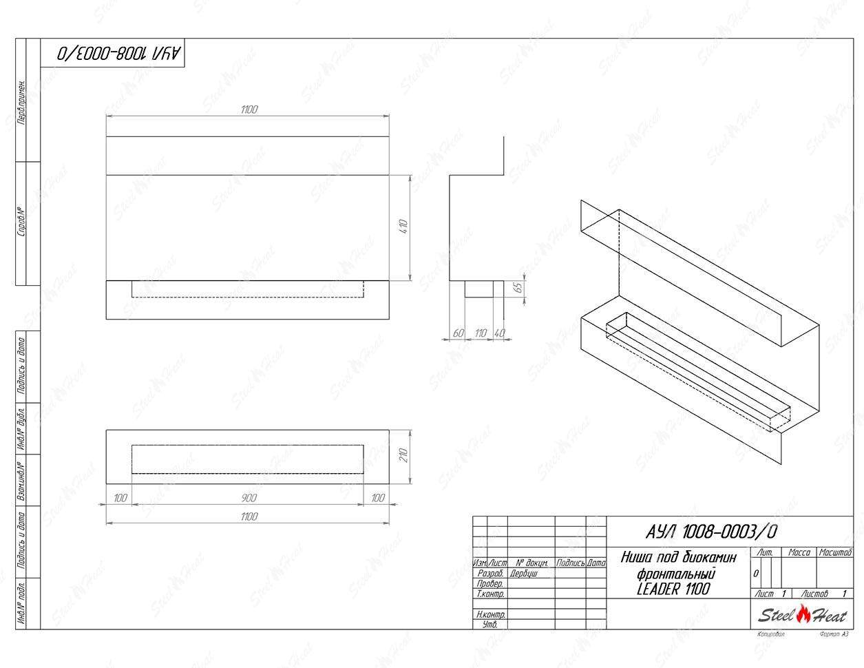 Встраиваемый Биокамин фронтальный SteelHeat Leader 1100предназначен для встраивания в глухие ниши из гипсокартона, кирпича, пеноблоков, бетона.