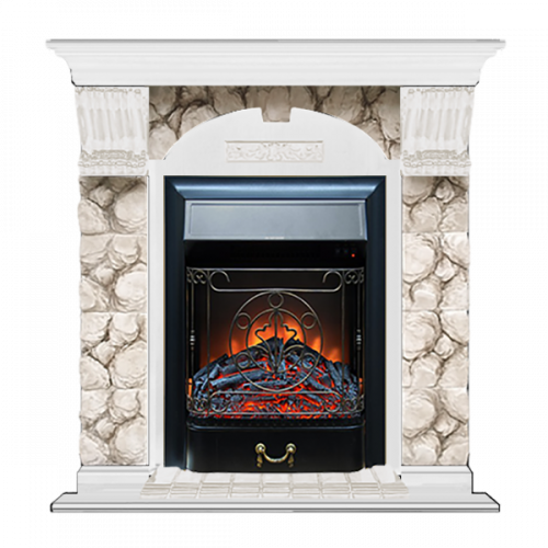 Каминокомплект Glenrich Арочный Карелия (белый)+Majestic Black