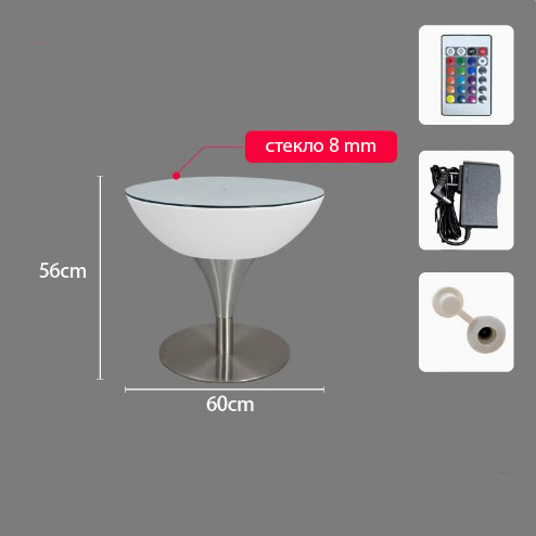 Стол светящийся круглый на металическом основании 60х60х56